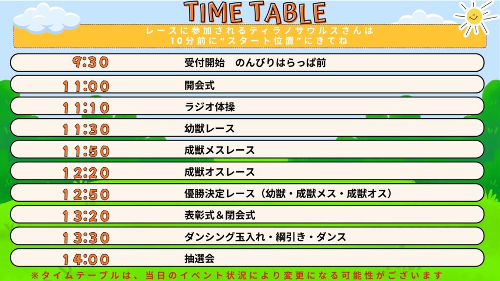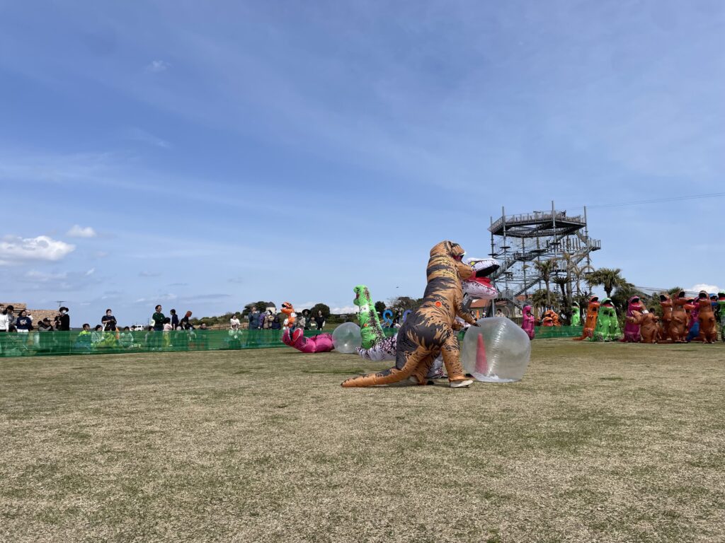 ソレイユの丘で毎回大好評のティラノサウルスレース!