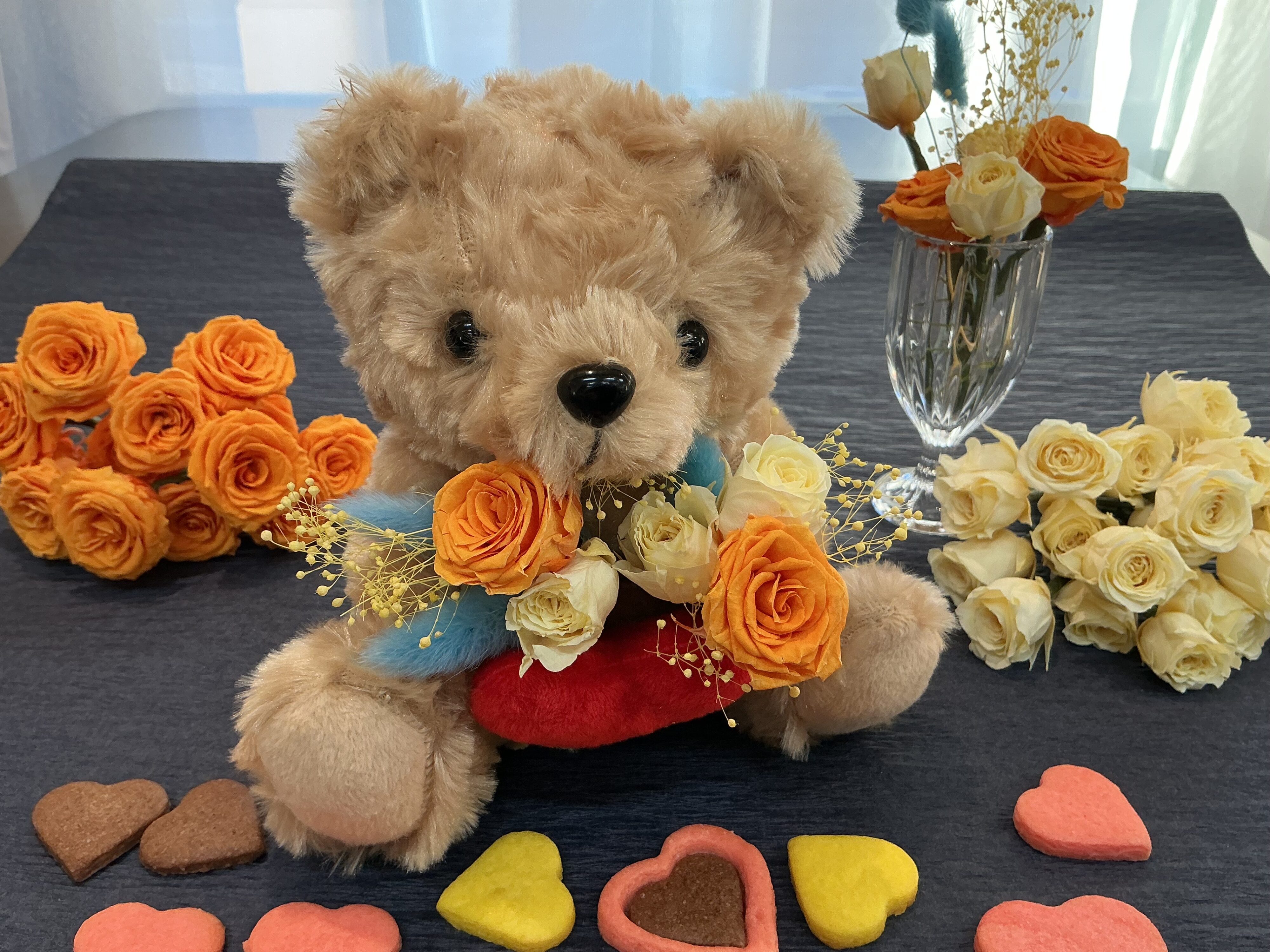 - 説明ふわふわのベアに、咲いたやさしい花々……。そっと想いをつたえてみませんか。