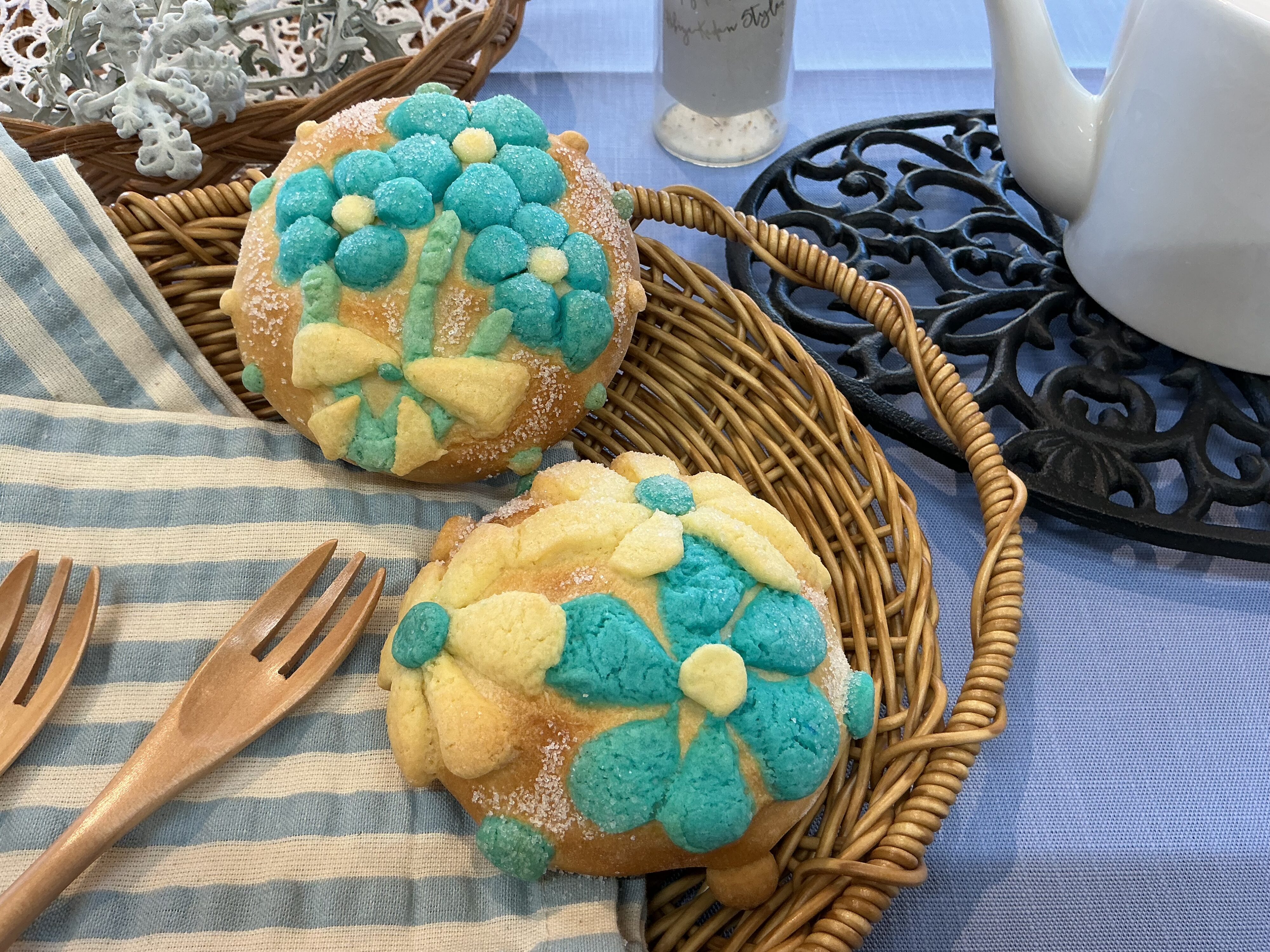 - 説明ネモフィラブルーのメロンパン。おいしいパンの上にかわいいネモフィラをさかせてみましょう。4月25日(土)~5月10日(日)までの期間限定商品です!