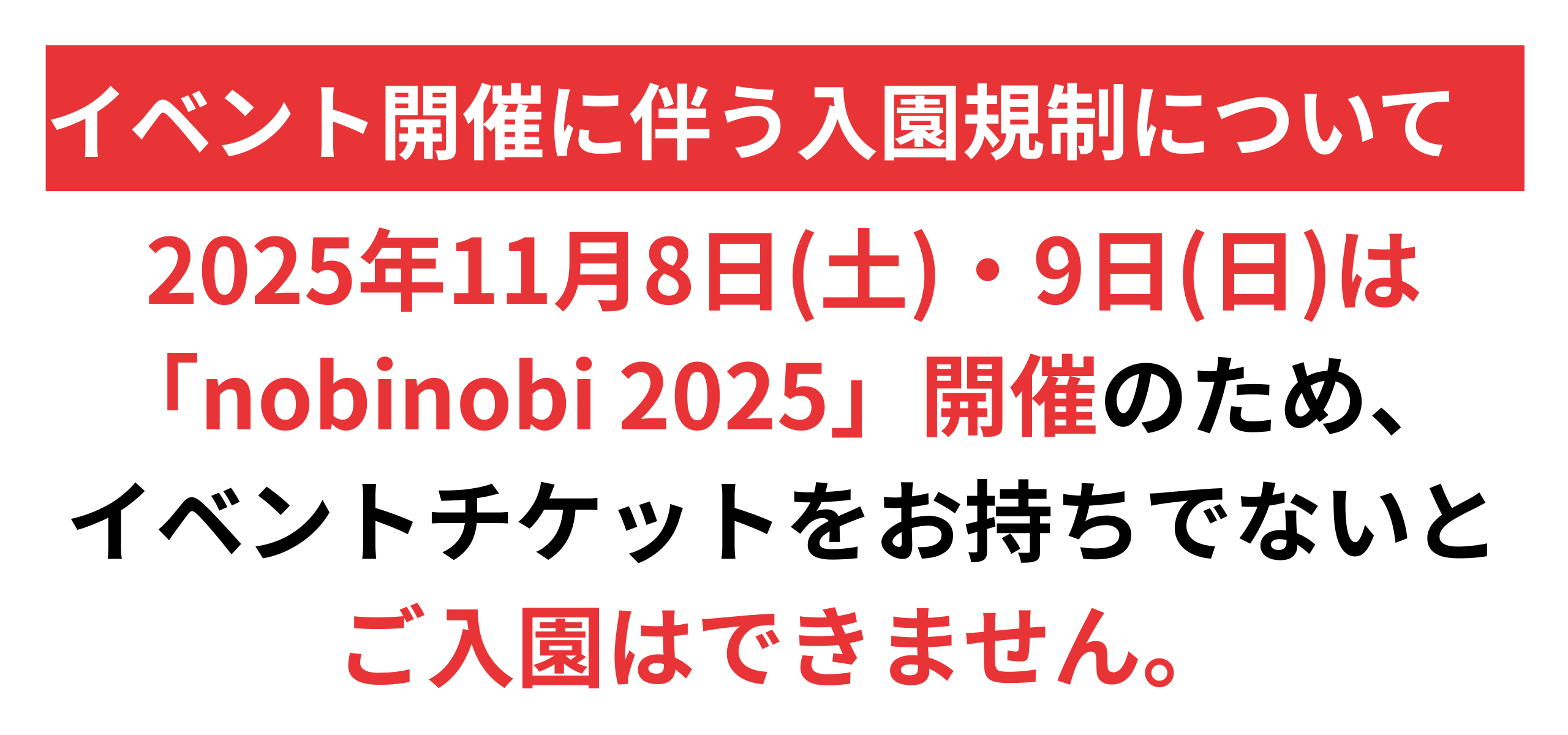 11/8(토), 9(일)은"nobinob 2025행사 개최에 따라 공원 전체가 대관된다,"nobinobi 2025의 티켓을 소지하지 않은 분은 입장할 수 없습니다.