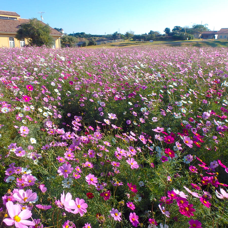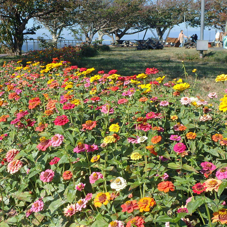 公园内随处可见可供游客欣赏四季变幻景色和季节表现的地方。找到属于自己的特别的地方,放慢脚步,放松身心。 点击此处了解最佳游览时间。 1. 宇宙 宇宙 日本名:秋樱。 展览将持续到 11 月 24 日。 地图在此 2.ナノハナ field mustard 和名:菜の花 少し咲き始めました。今はヒマワリと一緒にご覧いただけます。 地图在此 3. 紫薇。 紫云英 日本名称:百灵鹤(Hyakunichiwa)。 享受红色、桃色、橙色、黄色和白色的混合色彩。 地图在此 4.イソギク gold-and-silver chrysanthemum 和名:磯菊 海岸に近い場所で自生しています。 地图在此 最佳观赏期 七花 [花园西]。 十二月初 相关设施。相关设施一览表 花园东/西区 通往大海的步行道。 闲庭信步 观点 动物村 Ohana儿童房 海洋狗公园 YOKOSUKA 风景花园